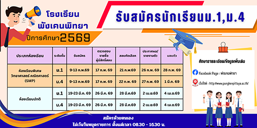 ประกาศรับสมัครนักเรียนใหม่! โรงเรียนพังเคนพิทยา ปีการศึกษา 2569