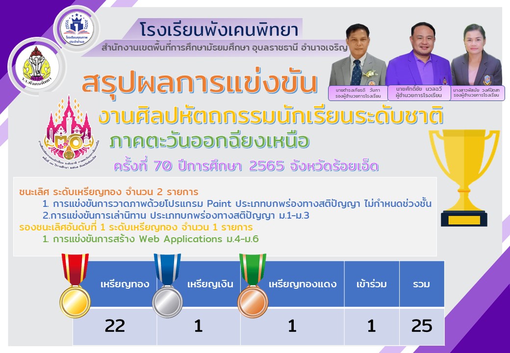 ผลการแข่งขันทักษะวิชาการ ครั้งที่ 70 ระดับภาคตะวันออกเฉียงเหนือ