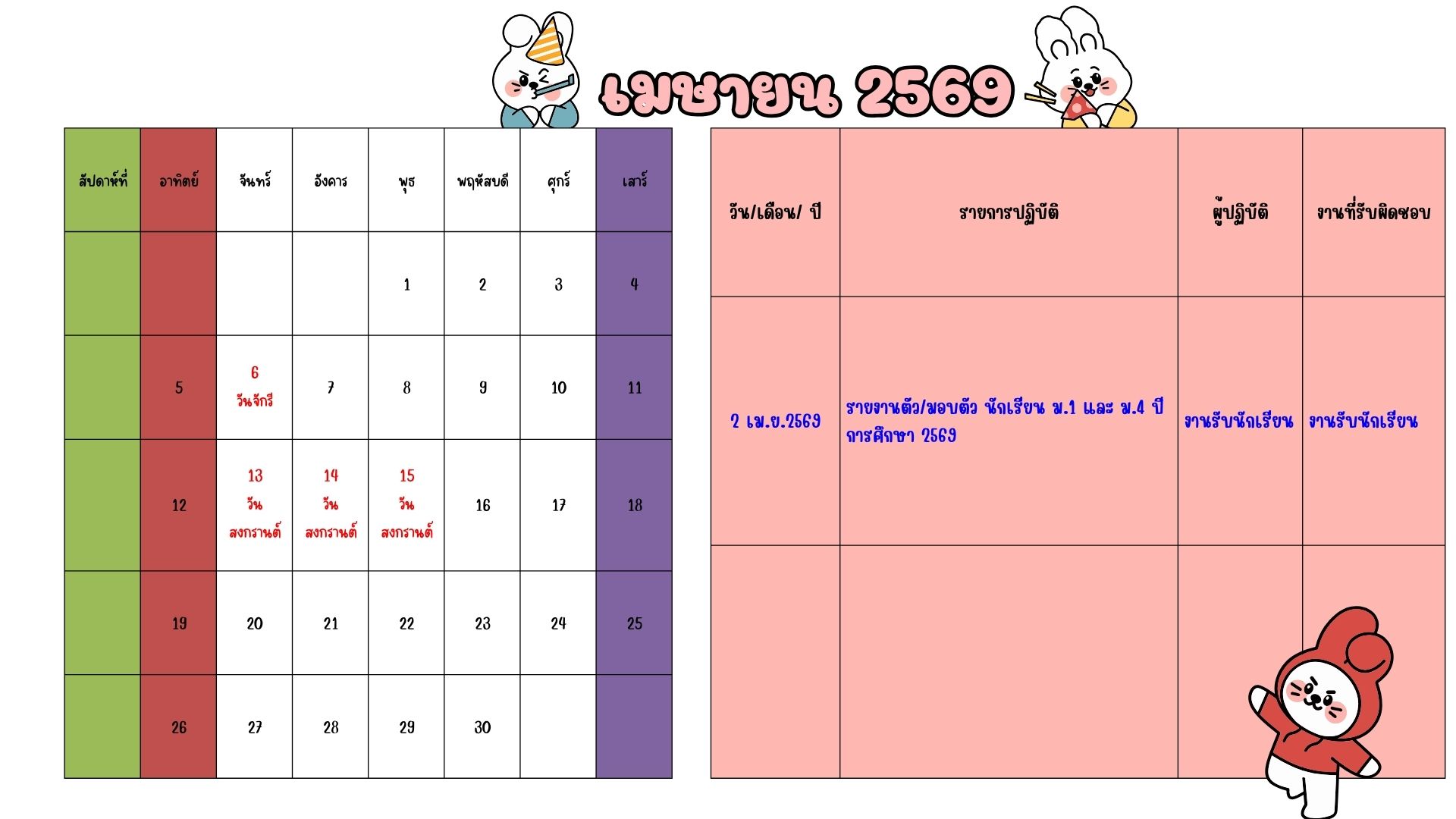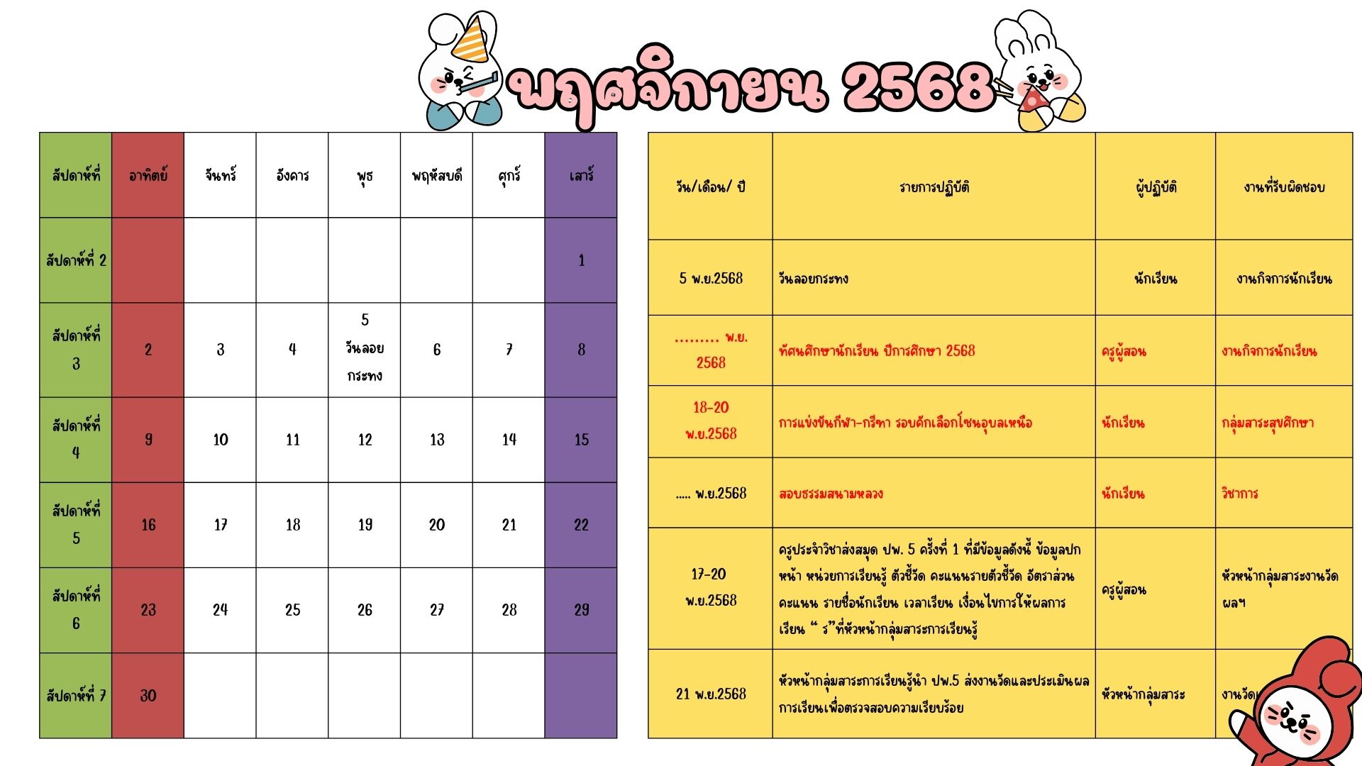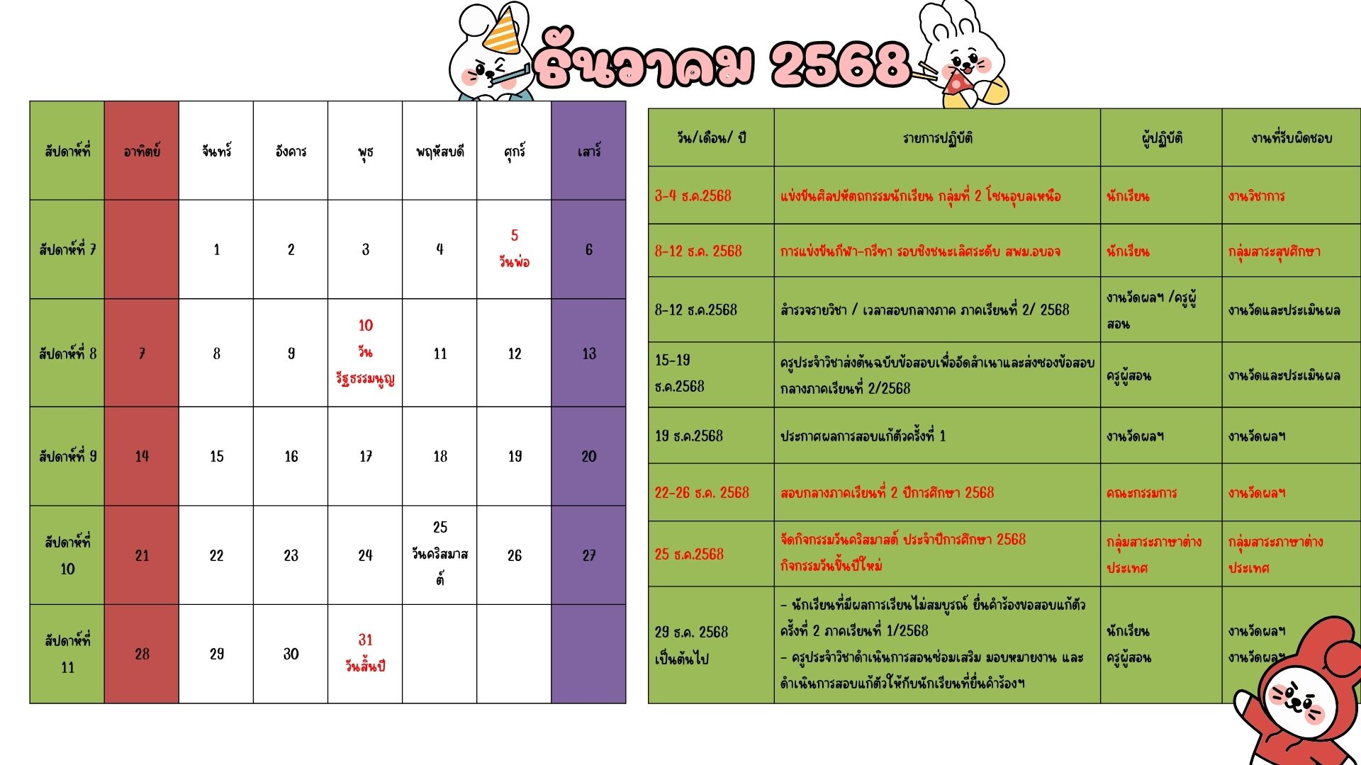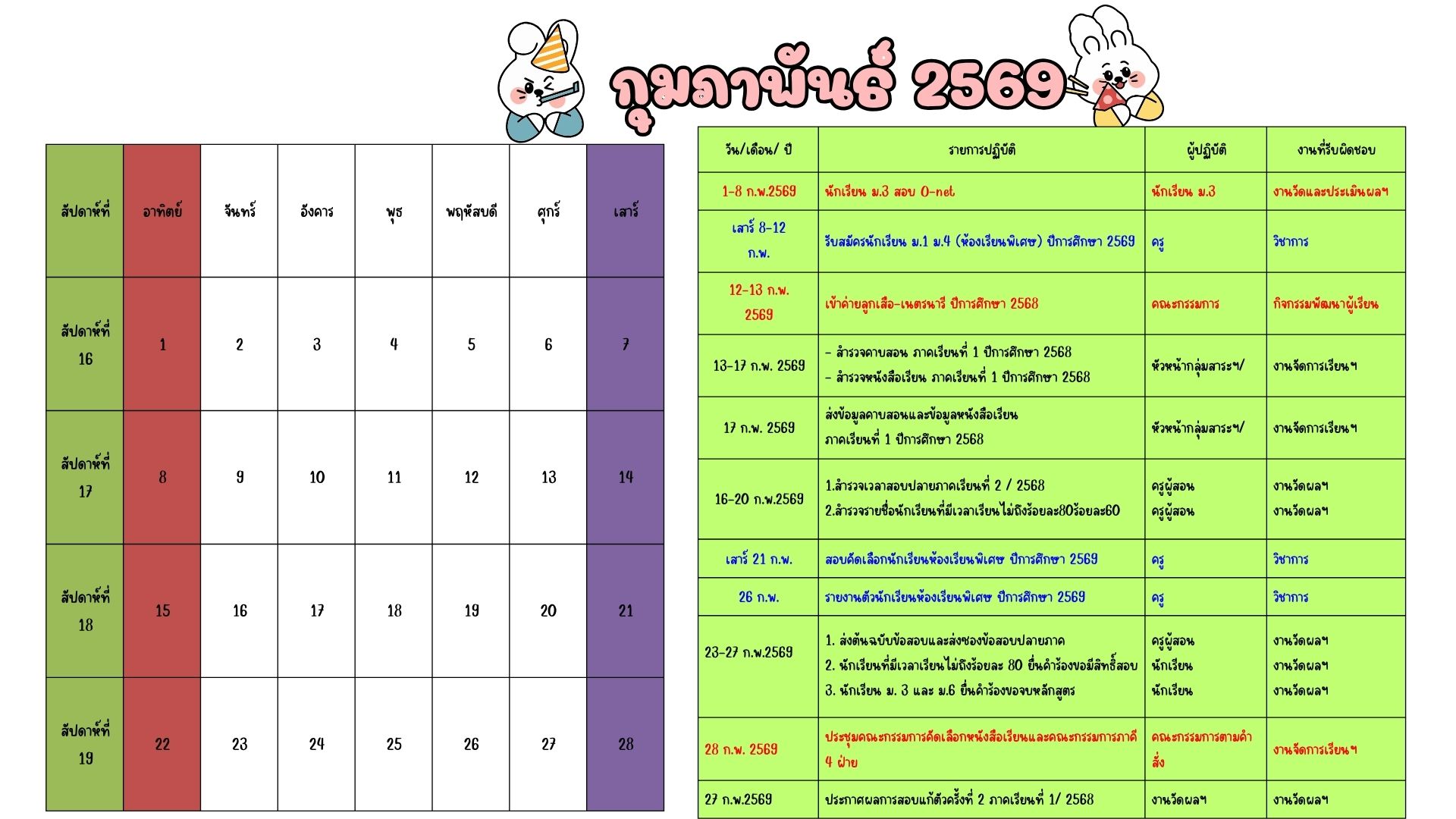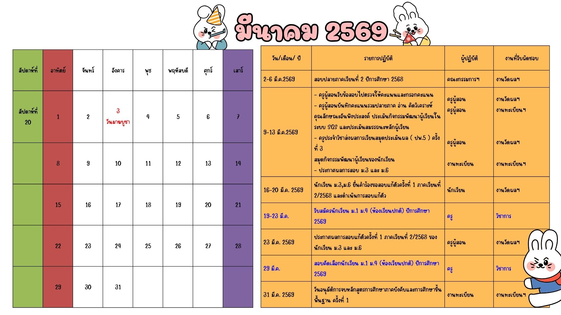 ปฏิทินปฏิบัติงานกลุ่มบริหารวิชาการ